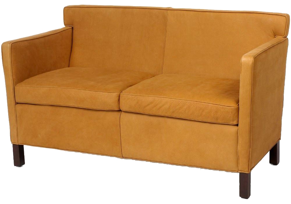 Krefeld designed by Ludwig Mies van der Rohe for Knoll is a sofa with hardwood inner frame, natural or stained oak hardwood legs and high-resilient foam cushions with dacron top layer, leather or fabric upholstered.