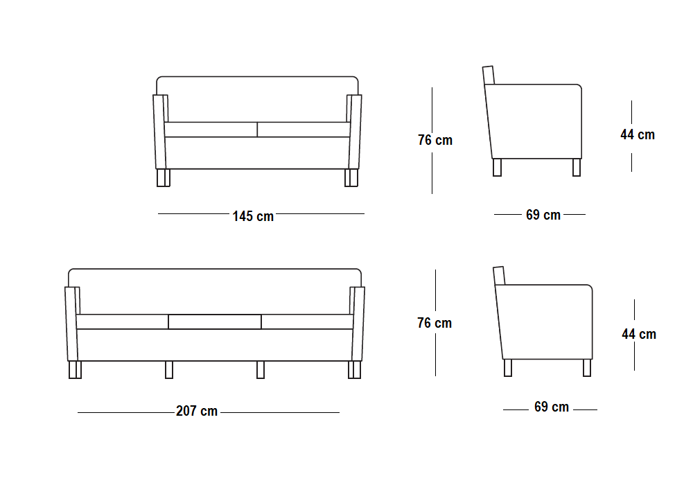 | Dimensions | 145 x 69 x H 76 cm; 207 x 69 x H 76 cm. |