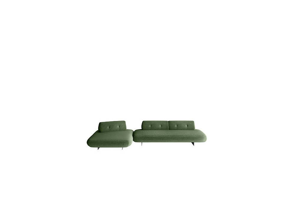 Sand designed by Daniele Lago is a modular sofa available with fixed or self-standing backrests. The metal supports are available in pewter steel and titanium steel, while the seat and backrests can be customized in the LAGO colors.