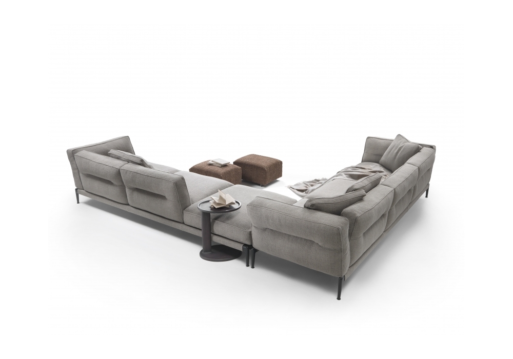 Adda designed by Antonio Citterio for Flexform is a modular sofa with metal structure padded with polyurethane foam, aluminum feet and seat and back cushions padded in goose. Structure and seat cushions are covered in leather or fabric.