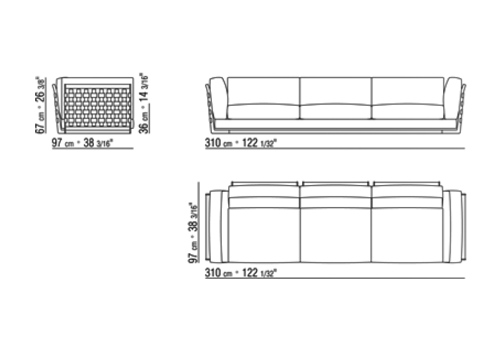 | Dimensions | • 140 x 97 x H 67 cm; • 225 x 97 x H 67 cm; • 310 x 97 x H 67 cm |