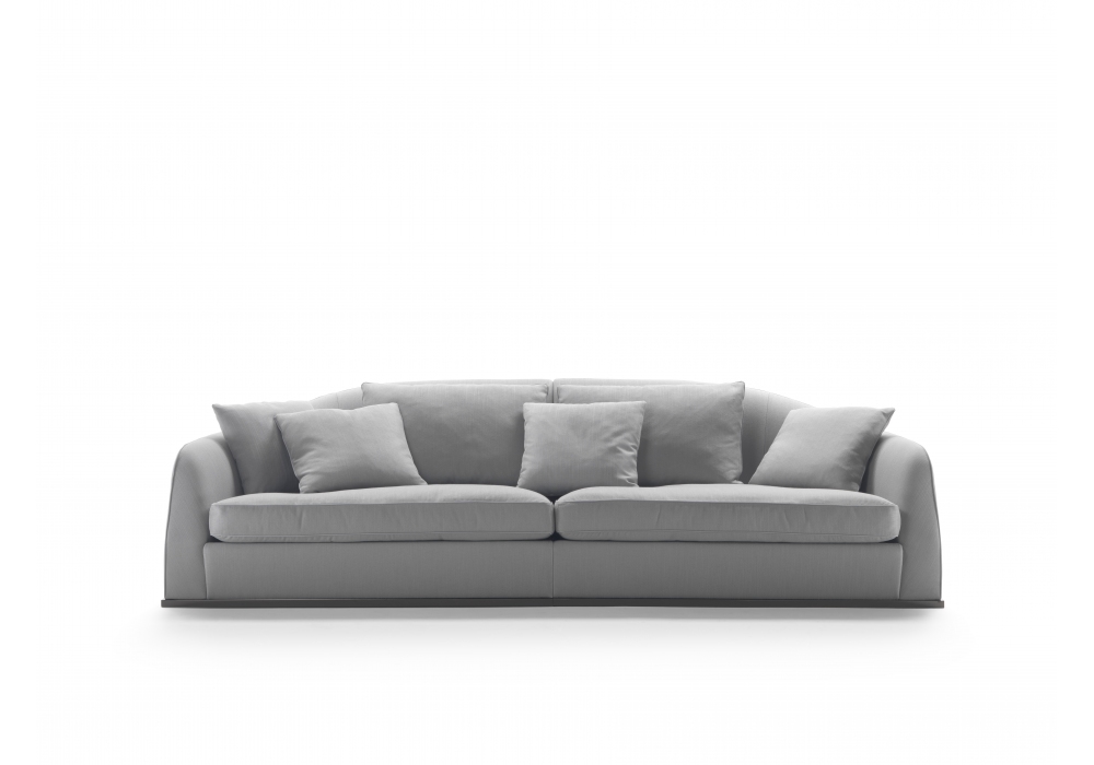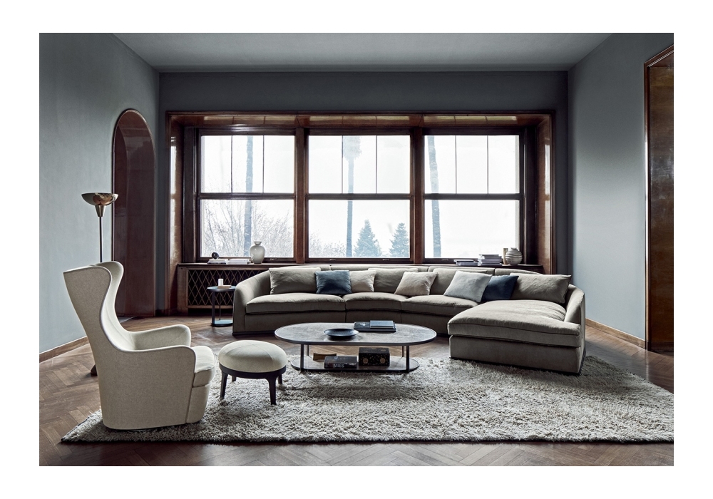 Alfred designed by Roberto Lazzeroni for Flexform is a modular sofa composed of a solid wood structure padded with polyurethane, metal base and cushions padded with goose down. The sofa is upholstered in leather or fabric.