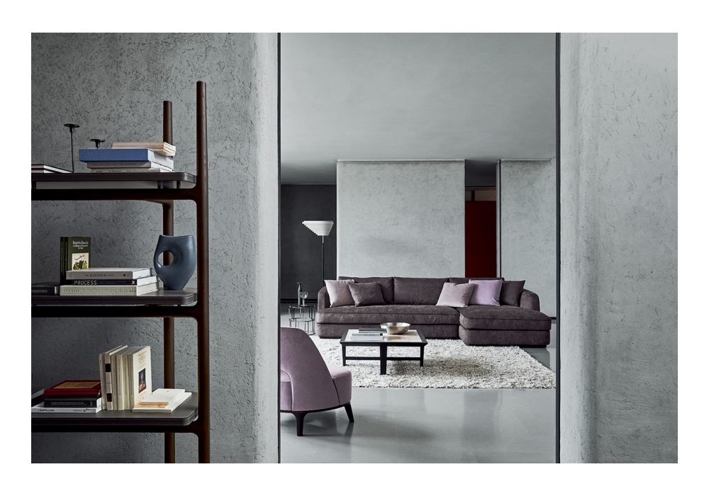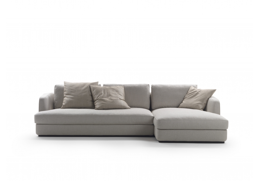 Barret designed by Roberto Lazzeroni for Flexform is a modular sofa composed of polyurethane padded solid wood structure, solid ash base and goose down padded cushions. The sofa is available with fabric upholstery and piping of your choice or with leather upholstery and piping with the same leather.