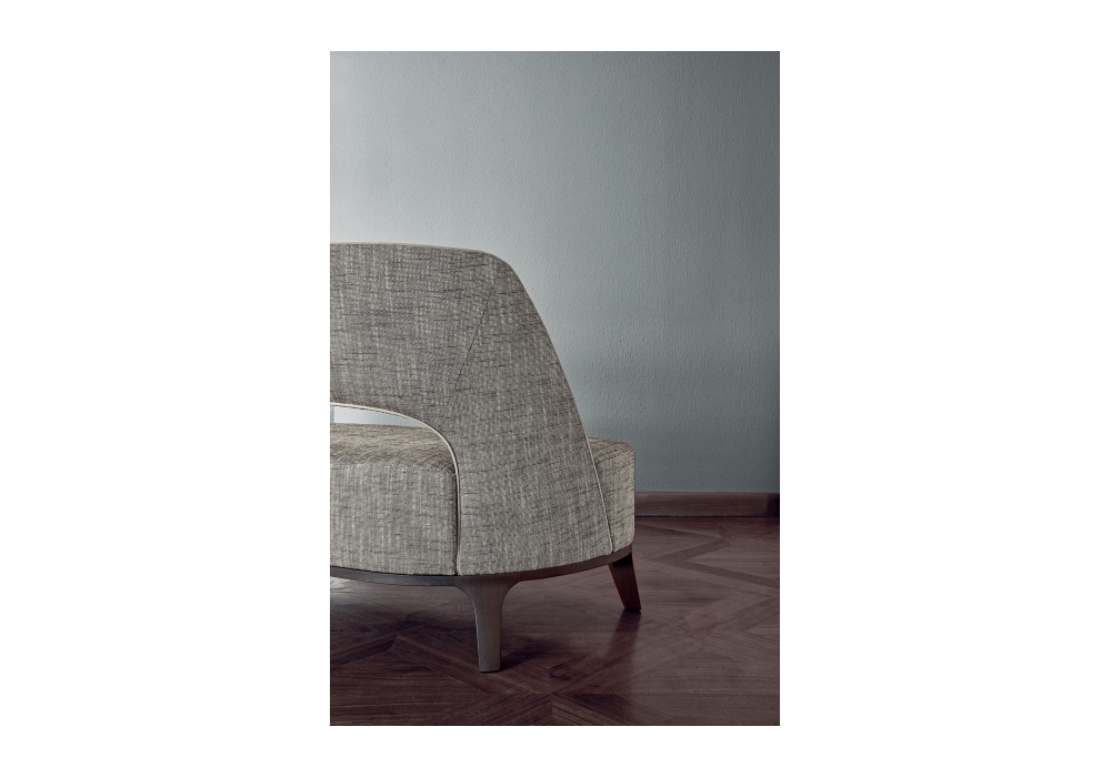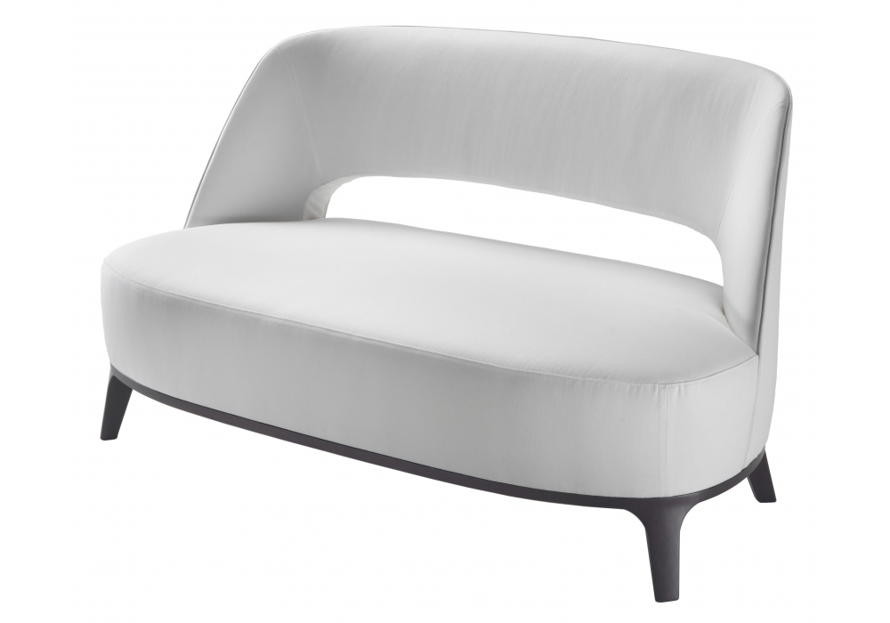 Ermione designed by Roberto Lazzeroni for Flexform is a settee composed of solid ash base, polyurethane padded plywood seat and polyurethane padded metal backrest. The settee is available with fabric upholstery and piping of your choice or with leather upholstery and piping with the same leather.