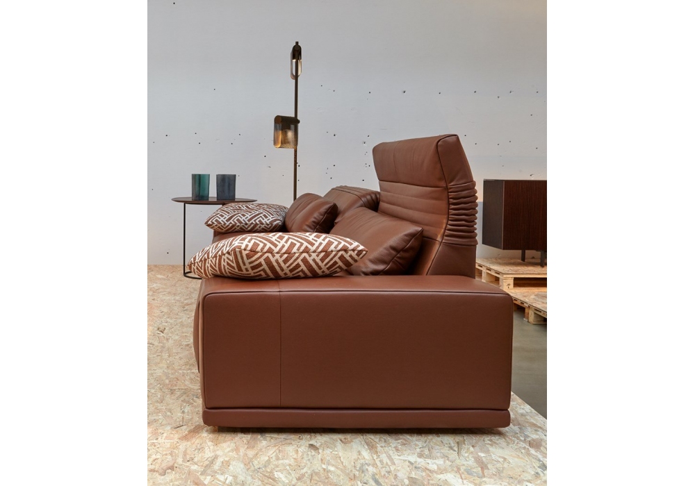 Grand Angle designed by Marie Christine Dorner for Ligne Roset is a sofa with upholstery in fabric or leather. Available in 4 sizes: 2 or 3 seats with narrow or wide armrests. With lumbar cushions (mandatory). A deep, multifaceted, international settee, the comfort of which is very apparent thanks to its articulated headrest and « stretch » stitching; it was designed to become a great international « classic ».