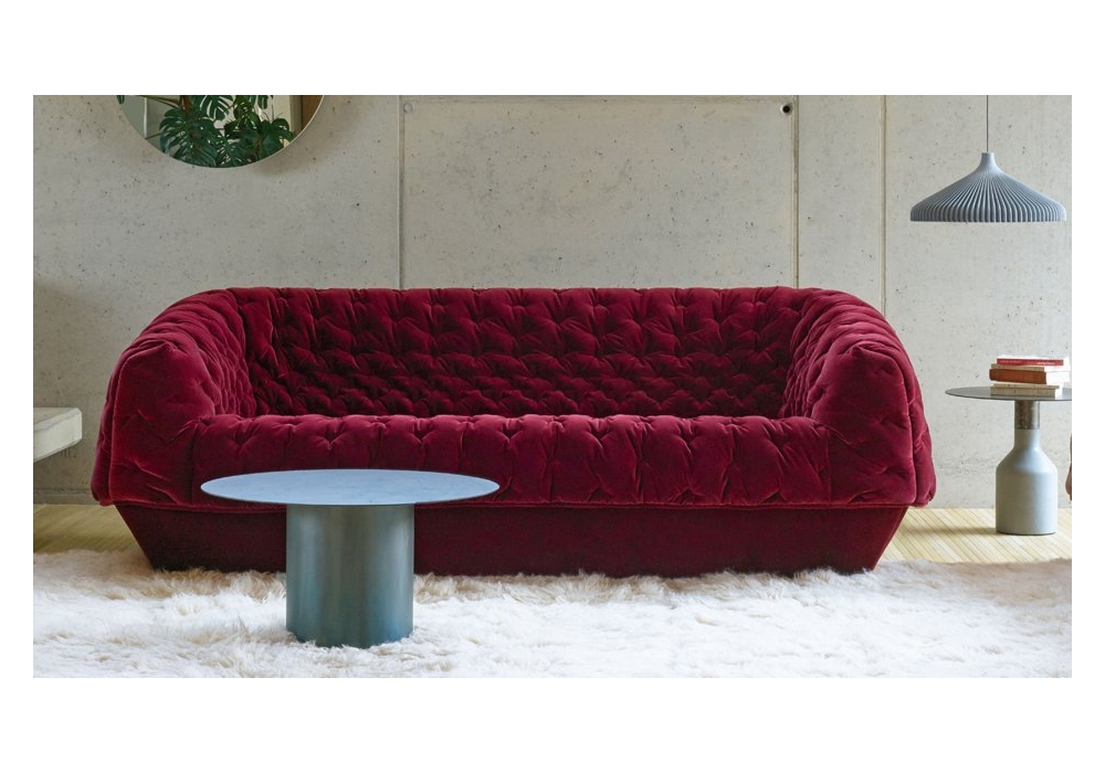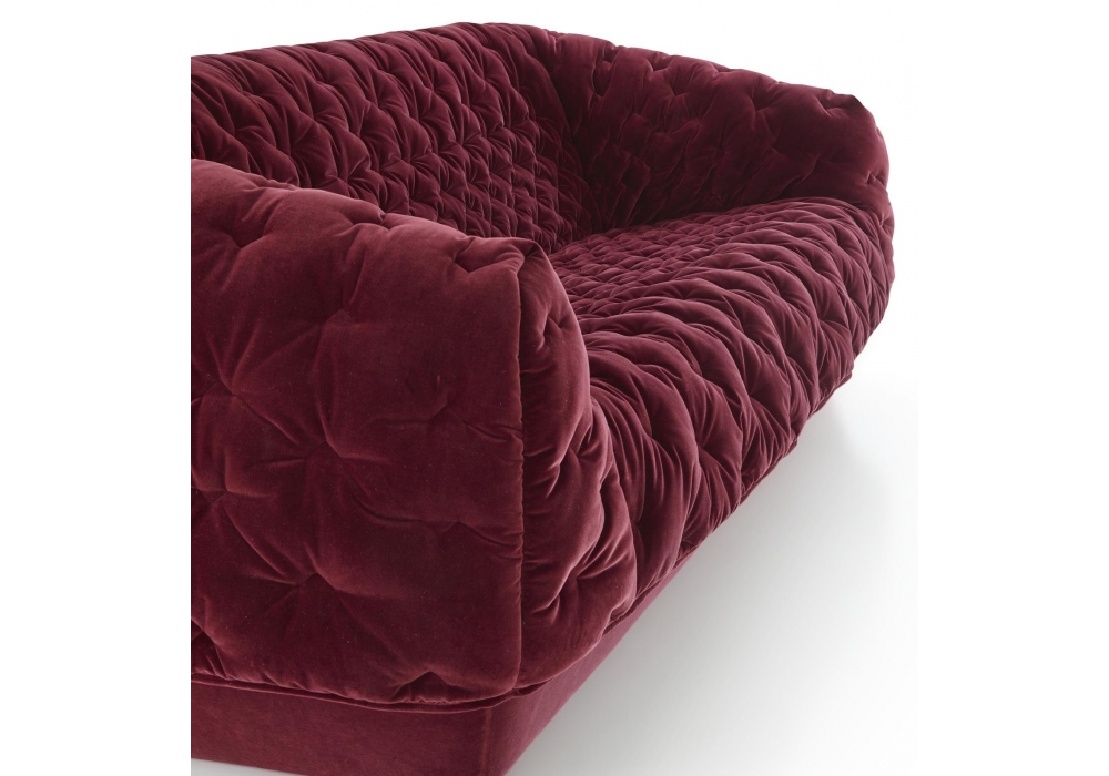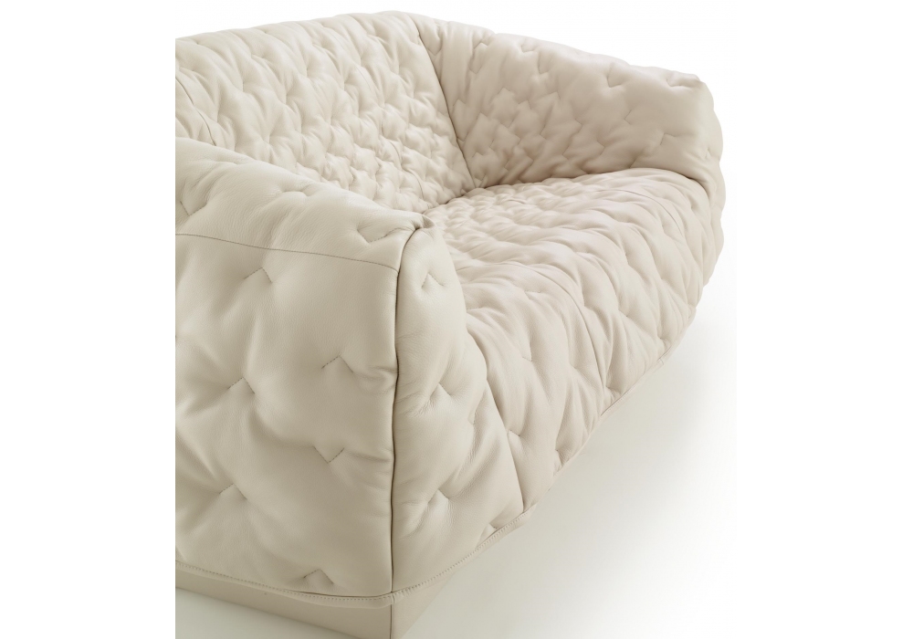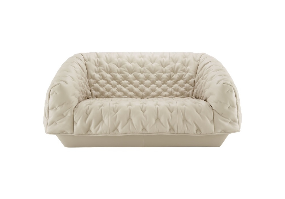 Cover designed by Marie Christine Dorner for Ligne Roset is a sofa composed of a base and a 'cover,' which is draped over the base and is held in position by toggles at the rear of the seat. Padding in high resilience Bultex foam. Progressive V-shaped motifs (denser towards the middle of the seat and less so at the edges). Supplied with a 40 x 40 cm feather-filled cushion. Also available in 2 or 3 seater.
