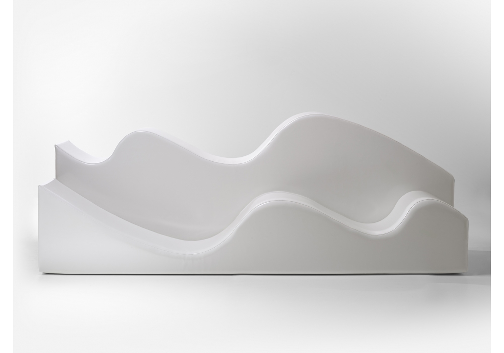 Superonda designed by Archizoom Associati for Poltronova is a modular sofa consisting of two waves, made from a block of polyurethane cut into two parts by an "S" cut, which fit together and overlap, forming different configurations. Glossy PVC upholstery. Available in different finishes.