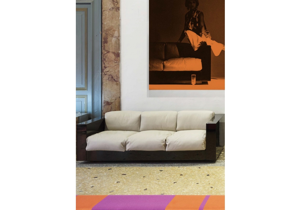Saratoga designed by Lella & Massimo Vignelli for Poltronova is a sofa made with wooden structure lacquered in glossy polyester and cushions upholstered in leather. Available in different finishes and dimensions.