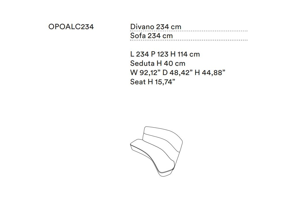 Polar Alcove designed by Pearson Lloyd for Tacchini is a sofa with internal structure in poplar plywood with elastic belts, with side frame in hardboard. The seat is padded with cold foam, with side frame upholstery with polyurethane foam. The feet are in aluminum. The upholstery is not removable and is available in different fabrics and colors.
