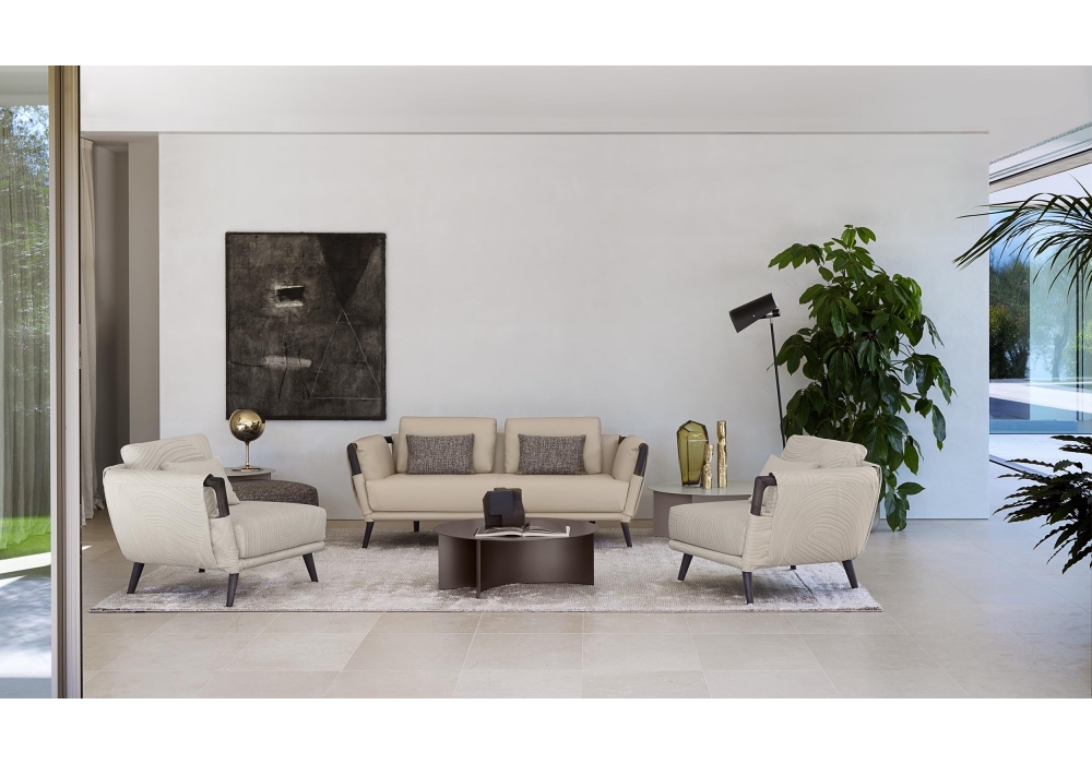 Gaudì designed by Matteo Nunziati for Flou is a sofa available in two sizes. Structure in solid wood in coffee oak or black-stained oak. Completely removable fabric or leather covering.