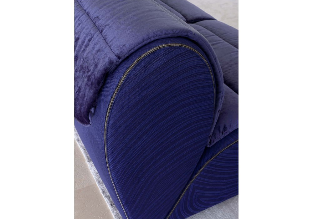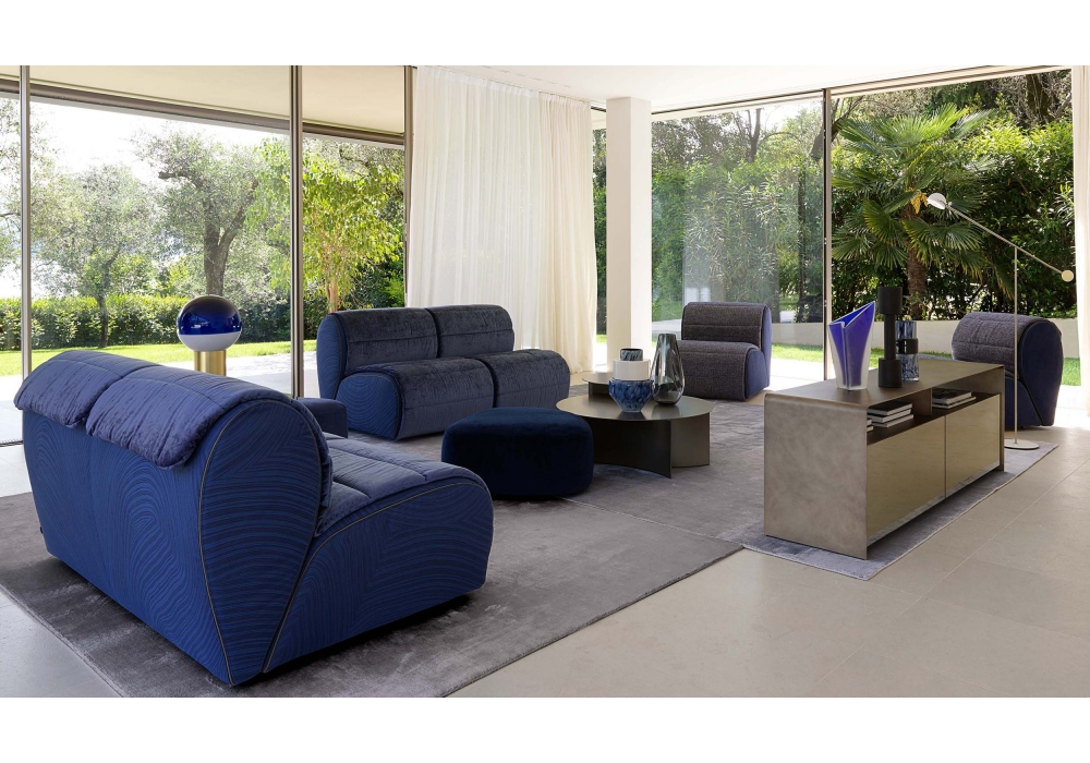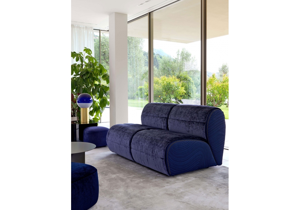 Flora designed by Ilenia Viscardi for Flou is a sofa with padded structure and covering in fabric or leather. Optional removable ‘cloak’, in the same fabric or leather cover or in a contrasting colour. It is fixed with Velcro in the central and lower parts of the seat and with a counterweight in the rear of the backrest.