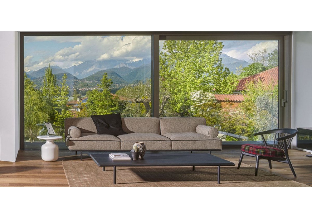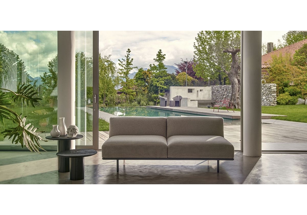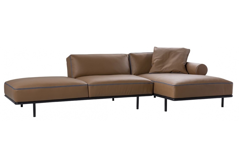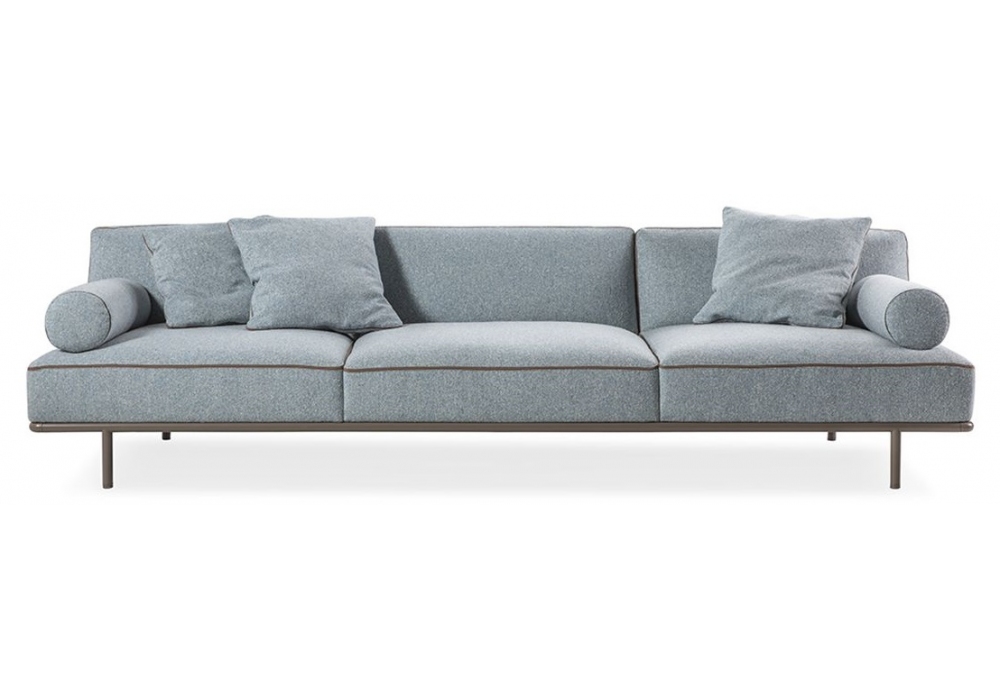 Cap Martin Sunset designed by Carlo Colombo for Cappellini is a two and three seater or modular sofa made with metal base and upholstery in fabric or leather. Available with and without gros-grain edge.