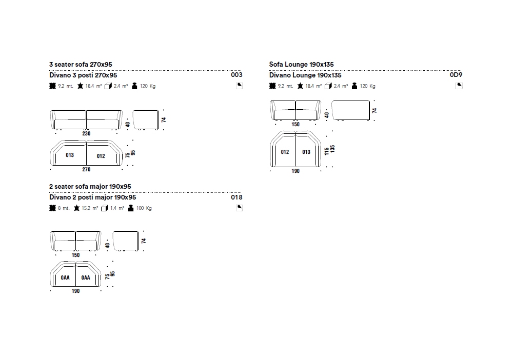 Chamfer designed by Patricia Urquiola for Moroso is a modular sofa made up of seating elements with stress resistant polyurethane foam in varied densities and polyester fibre on wood frame. Terminal parts of the sides are injected flame retardant polyurethane foam. Chamfer collection covers are removable.