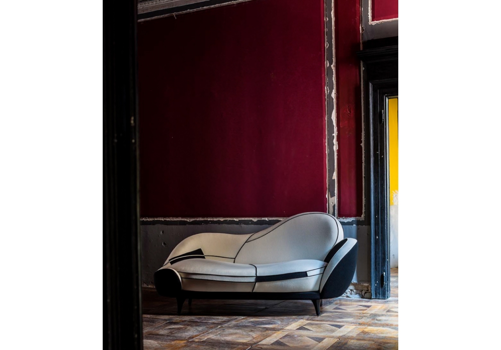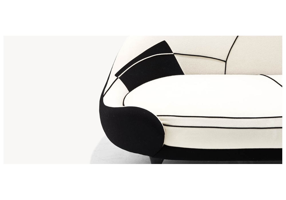 Saula Marina designed by Javier Mariscal for Moroso is a sofa made of polyurethane foam in varied densities and polyester fiberfill on wood frame. Feet are beech with cipria or black lacquer finish screwed to the frame.