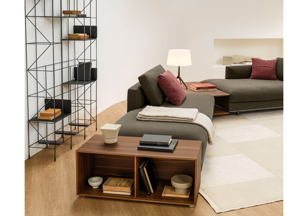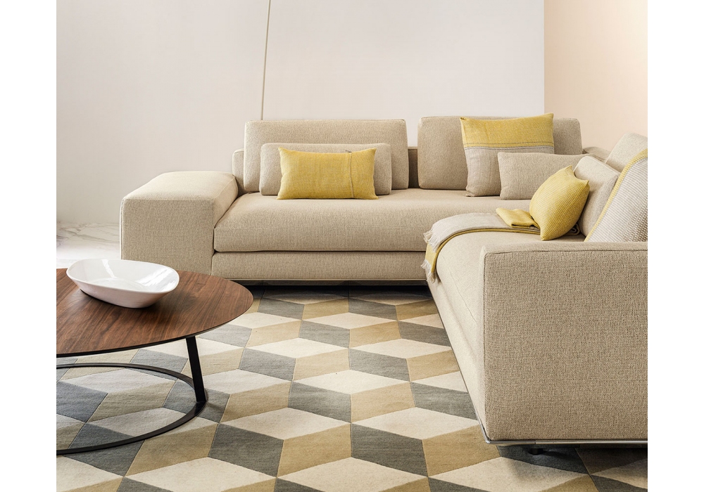 Miles designed by Ludovica & Roberto Palomba for Casamania & Horm is a sofa made with aluminum frame and feet, base, back and armrests with solid wood and plywood structure padded with high density polyurethane foam. The cushions in highly resilient polyurethane foam in different densities rest on elastic straps with a high rubber component inserted into the base. Upholstery in fabric or leather. Available in different compositions.