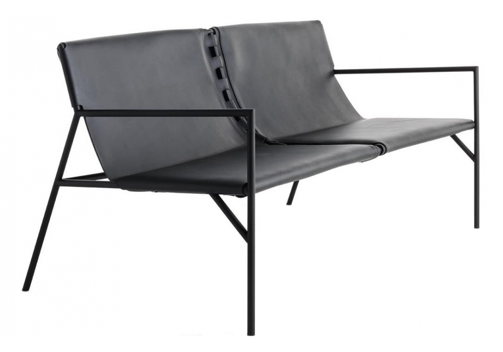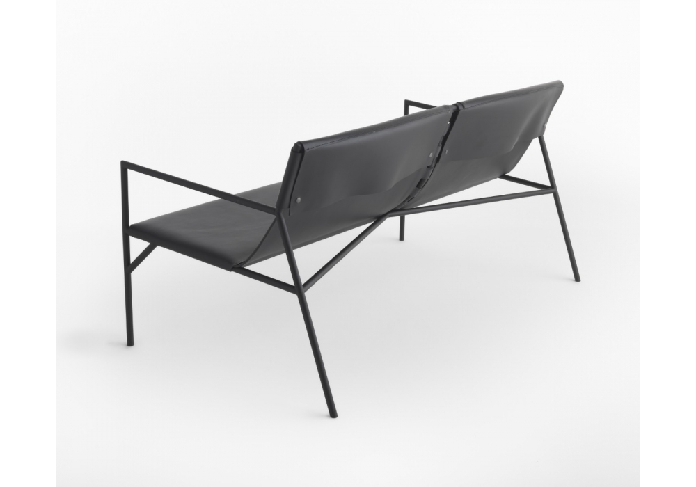 Tout le Jour Sofa designed by Marc Thorpe for Casamania & Horm is a sofa made with a supporting structure in black painted metal tubing. Belted seat for optimal comfort and leather upholstery.