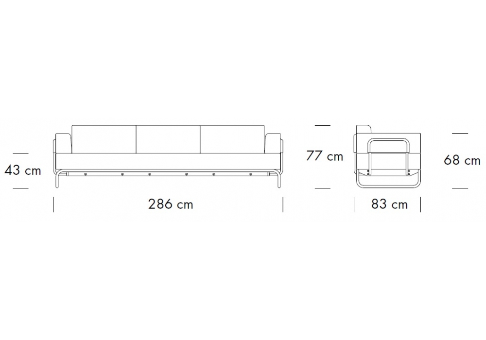 | Dimensions | • 206 x 83 x H 77 cm; • 286 x 83 x H 77 cm |