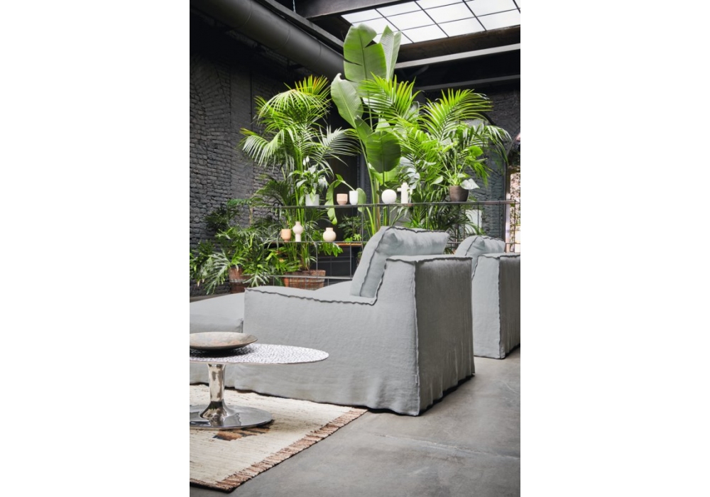 Loll designed by Paola Navone for Gervasoni is a modular sofa with polyurethane foam padding. Seat and back cushions in mixed feather, removable upholstery in different finishes.