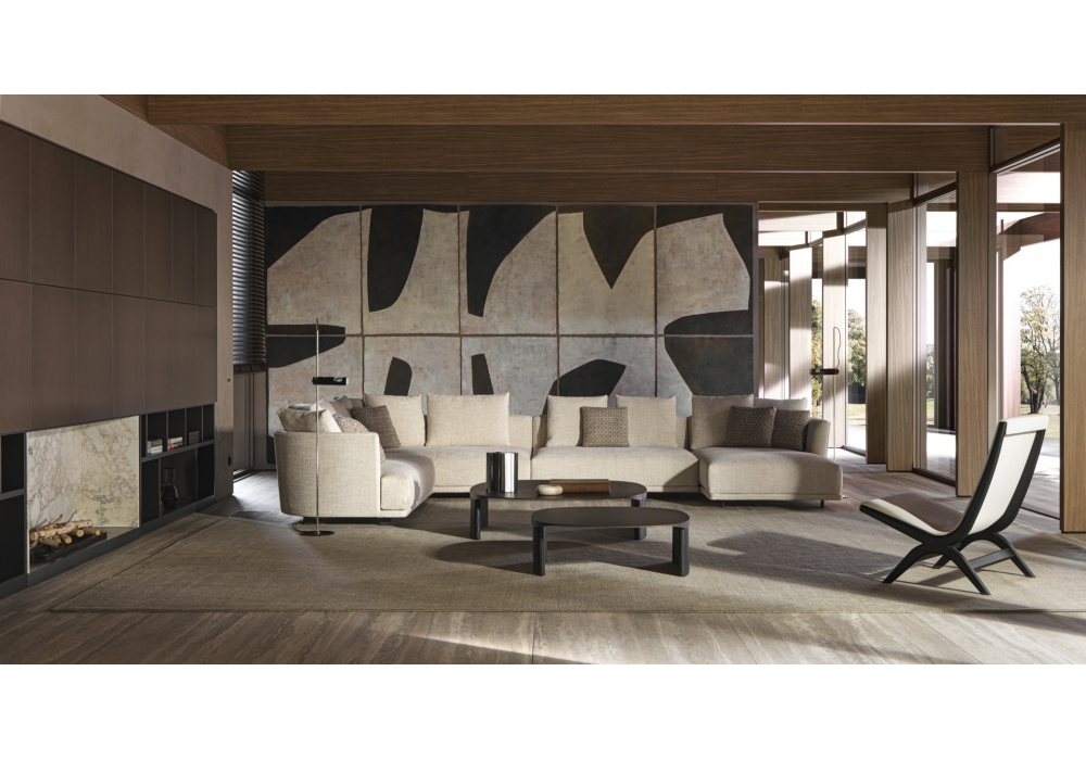 Cleo designed by Vincent Van Duysen for Molteni&C is a modular sofa born from the combination of various elements, straight, corner and island, which allow you to create a vast number of compositions suitable for any type of living. The heart of the project is the body, which is used for each individual component. The possible combinations of the various upholstery materials for the shell and seat cushions allow you to obtain a contrast or emphasize the harmony of the two elements. The back cushions are rectangular and can be freely positioned. Cleo is supported by feet in thin painted steel sheet.
