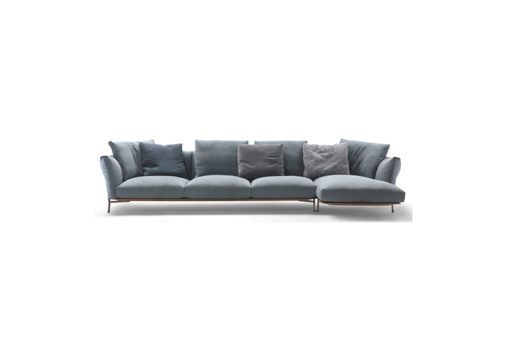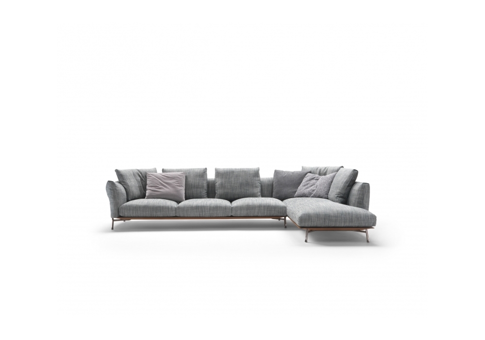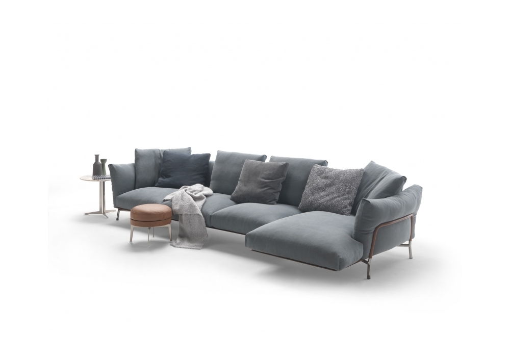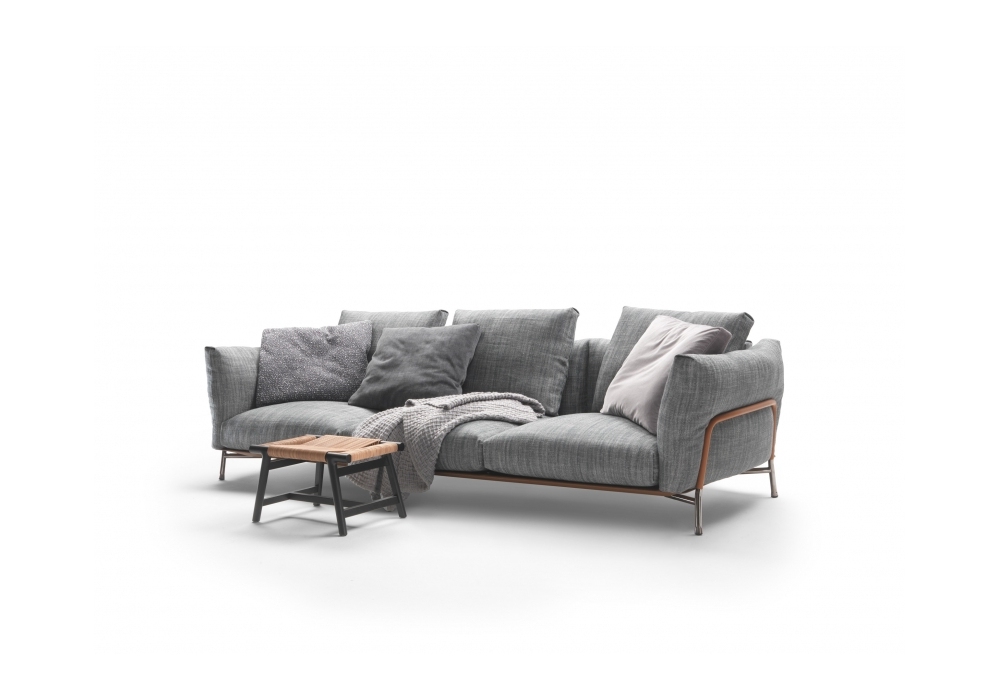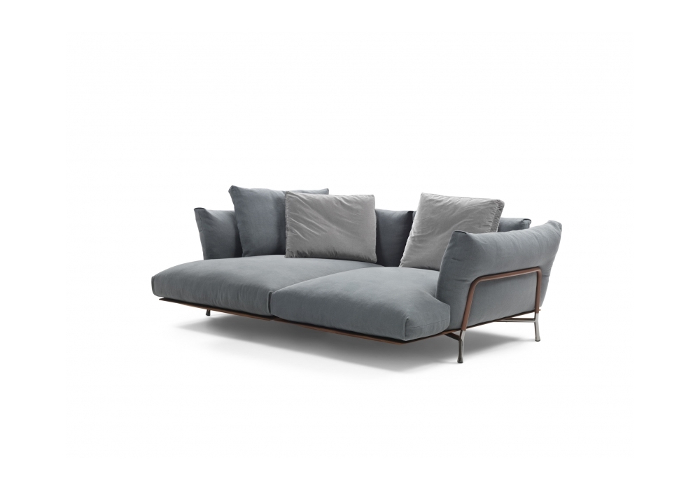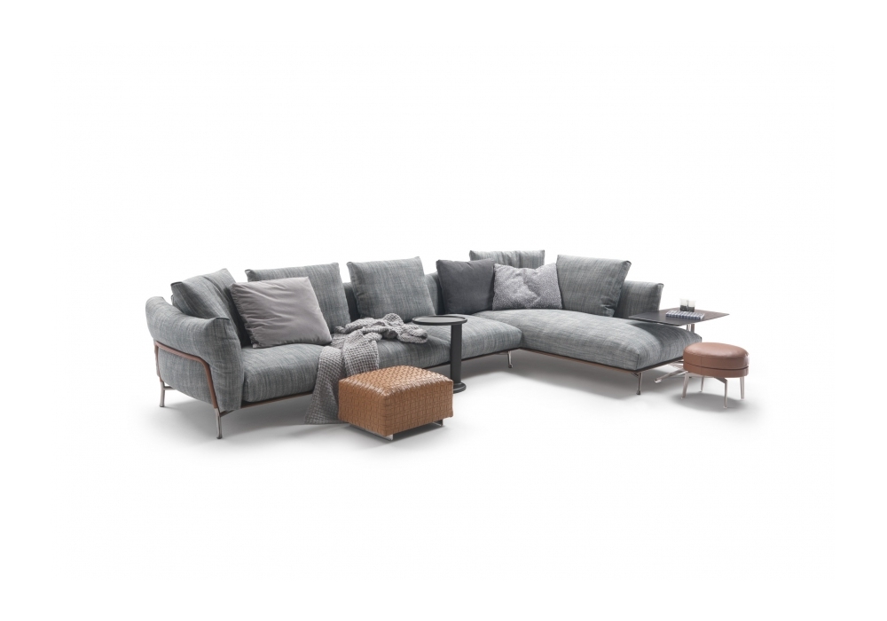 Ambroeus designed by Antonio Citterio for Flexform is a sofa with hide leather cover metal structure and armrest, metal feets, and fabric or leather upholstery. It is available in different configurations.