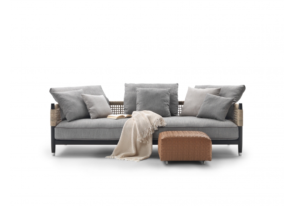 Parker designed by Antonio Citterio for Flexform is a sofa with solid wood structure, shell in strow or hide leather weaved, and fabric or leather upholstery.