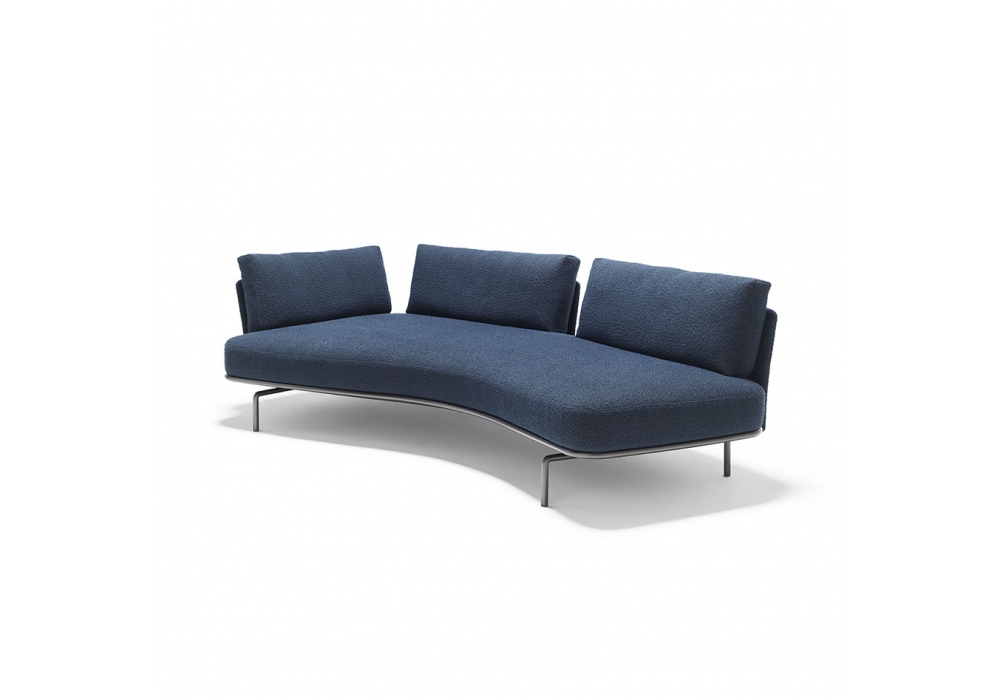 Panoramic designed by Piero Lissoni for Knoll is a multifunctional sofa that stands out for its ability to transform. It can be arranged vis-à-vis, as a super chaise longue, an island, a bench, a daybed or an enticing sofa. Thanks to the three mobile backs, with a simple gesture it is possible to shift and revise the configuration. Panoramic sofa is composed of feet and base in round section tubular metal, available in charcoal painted or glossy painted finish. Seat structure with base made of wood, elastic top made using belts and padding in flexible polyurethane with variable density. Slip covers in fabric or leather. Backrest: moulded polyurethane structure and metal frame. Available in three different sizes, slip covers in fabric or leather.