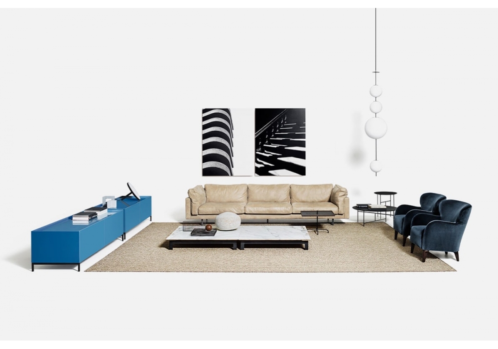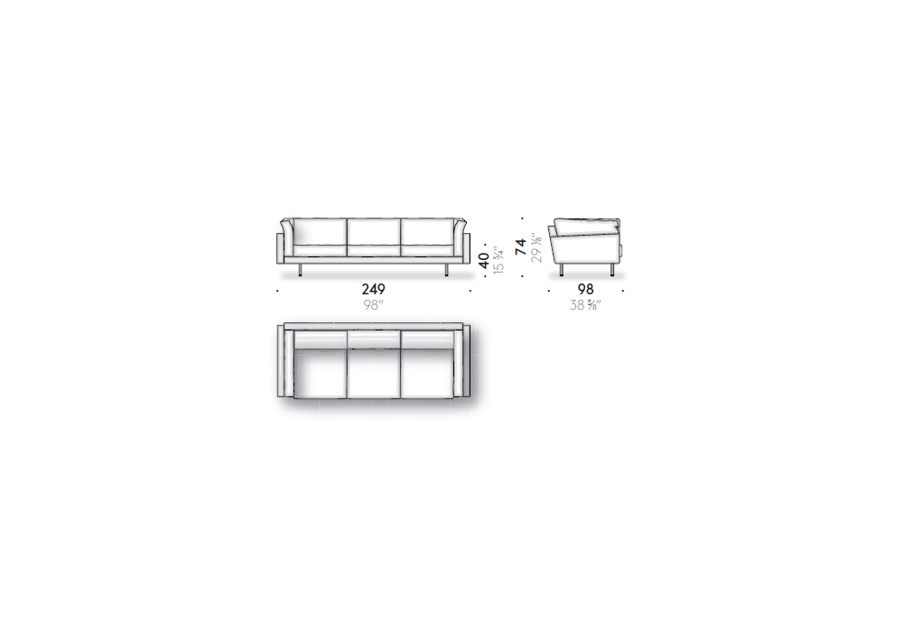 Square 16 signed by C.R. S. De Padova for DePadova is a sofa made with feet in gunmetal-colored steel or in solid walnut canaletto ash wood and upholstery in fabric or leather. Available in different finishes and dimensions.