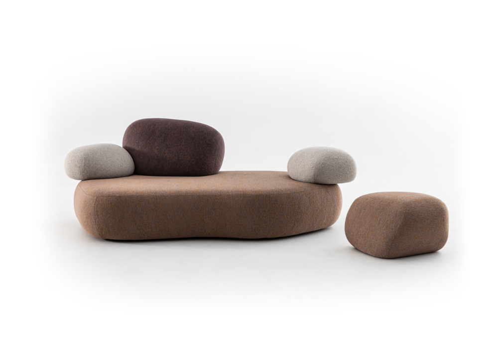 Pebble Rubble designed by Front Design for Moroso is a modular sofa with seat element in flame-retardant polyurethane foam, covered with polyester fiberfill over wood frame. For back elements internal structure in polymer composite and fire-resistant polyurethane foam with wooden base.