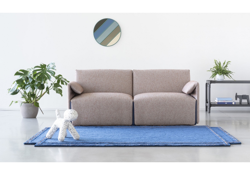 Costume designed by Stefan Diez for Magis is a sofa made up of two or three single elements, joined by a pair of connectors. Polyethylene structure and removable fabric cover.