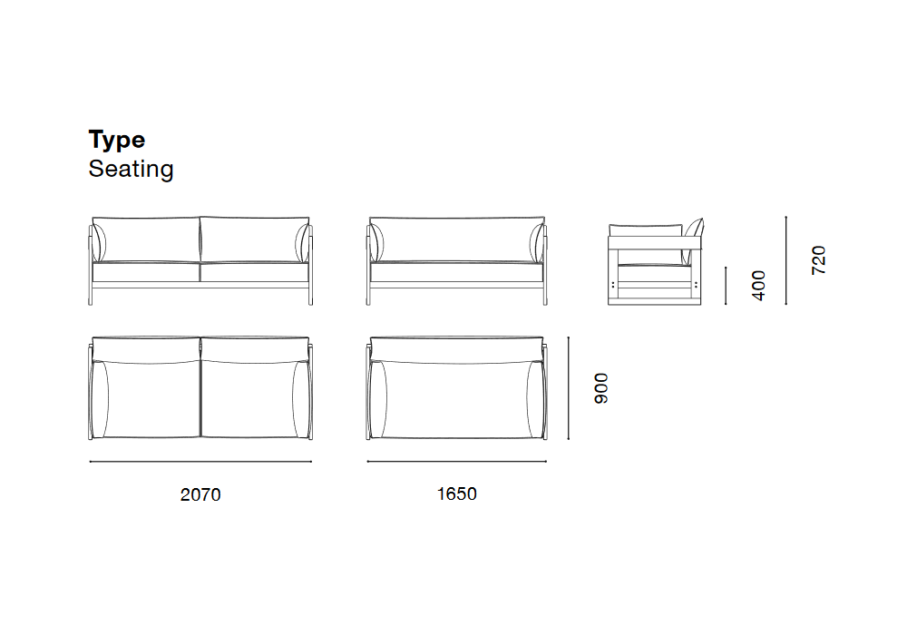 | Dimensions | - 165 cm × 90 cm × H 72 cm; - 207 cm × 90 cm × H 72 cm. |