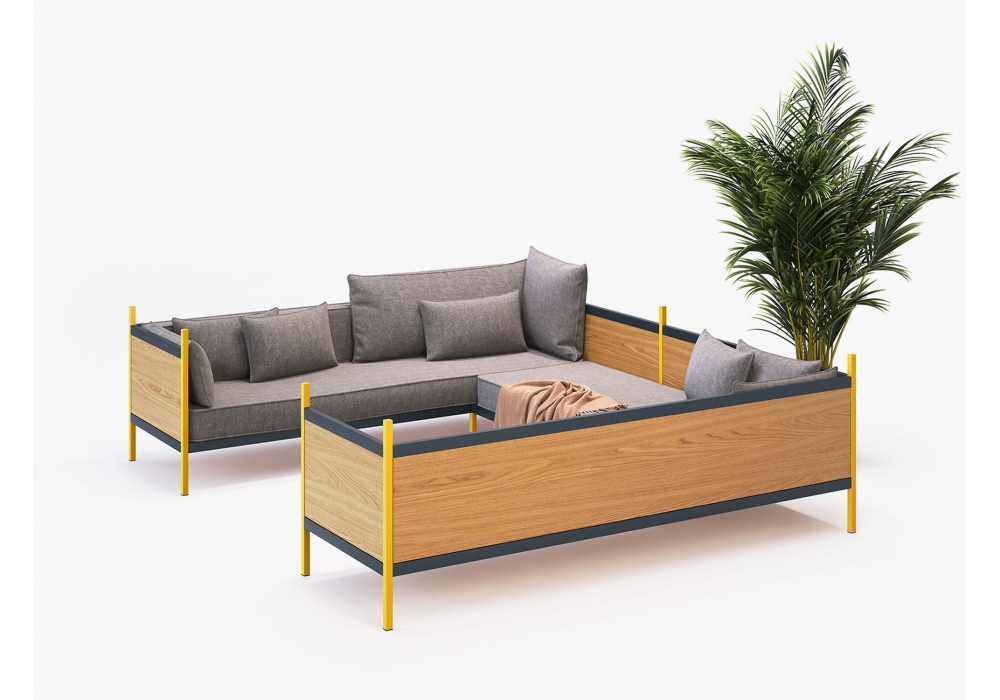 Grid designed by Ronan & Erwan Bouroullec for Established & Sons is a sofa made on a powder-coated steel frame and can function as a high or low divider. The cushions are available in different finishes.