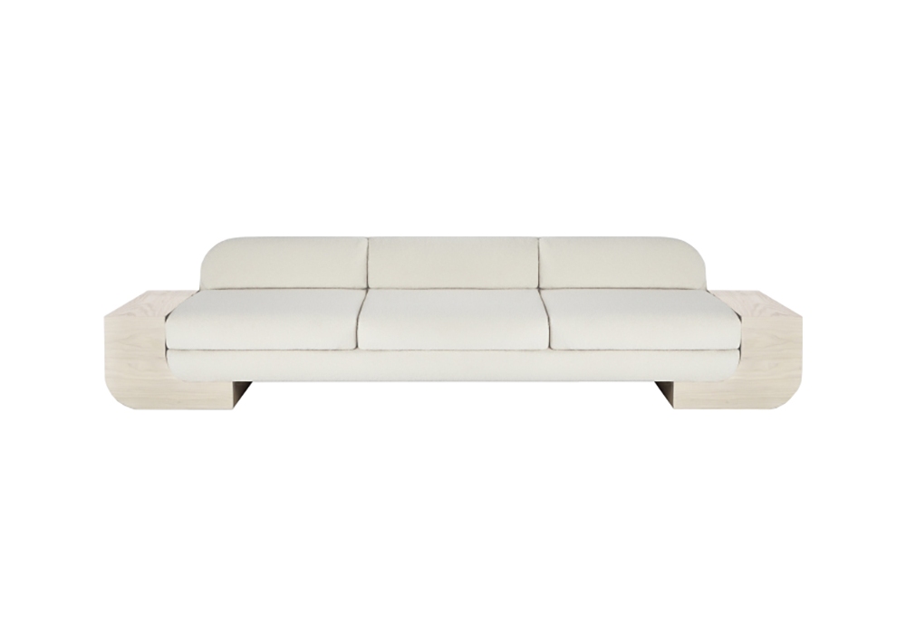 White Street produced and signed by Lee Broom is a sofa with ash wood structure. The seat and back are covered in bouclé wool fabric. White Street is available in different sizes, wood and fabric finishes.