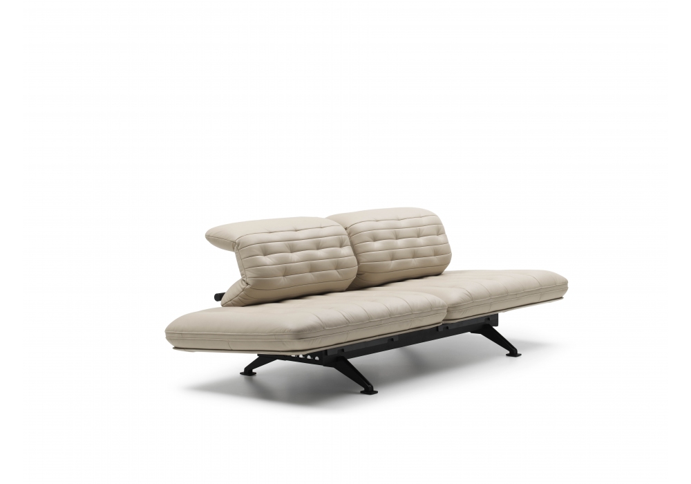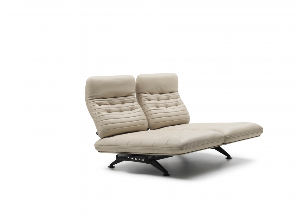 DS-490 designed by Thomas Kirn & de Sede Design Team for De Sede is a sofa that can be converted into a double reclining chair. The two seating elements rest on thin platforms that can be rotated independently of each other by 90 °. Leather upholstery in different finishes.