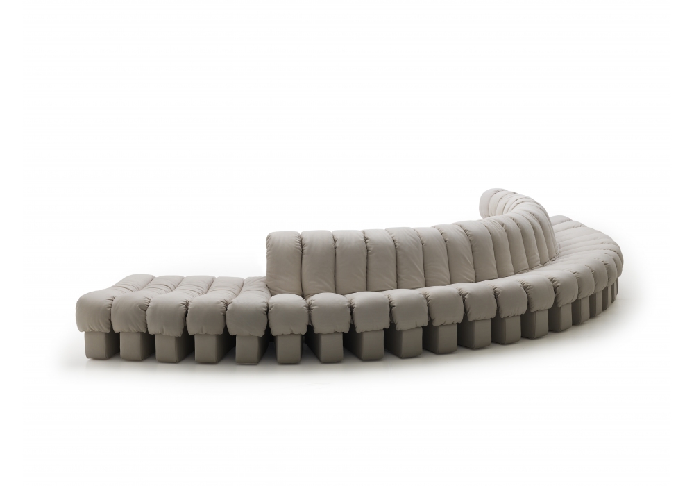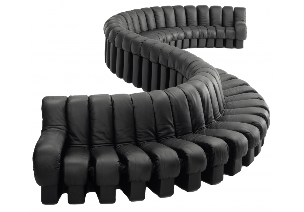DS-600 designed by de Sede Design Team for De Sede is a modular sofa composed of single elements made of L-shaped hard foam covered with a feather-lined cushion covered in leather. The elements are connected with a push-fit zipper and a leather and zipper construction. Upholstery in leather or fabric in different finishes.