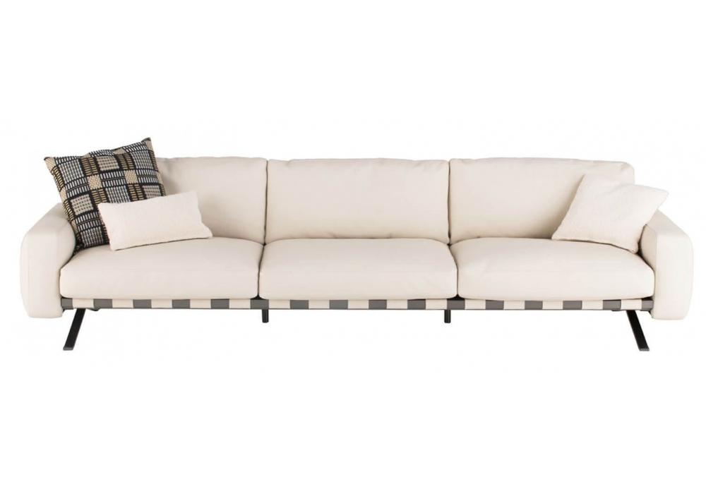 Fenix designed by Ludovica & Roberto Palomba for Driade is a modular sofa with metal base structure in tubular steel and elastic webbing, feet in drawn steel painted in bronzed pewter color. Backs in plywood shaped like a "soap". Padding of the backrests and seat cushions in polyurethane rubber and goose down, removable cover in fabric or leather. Internal use only.