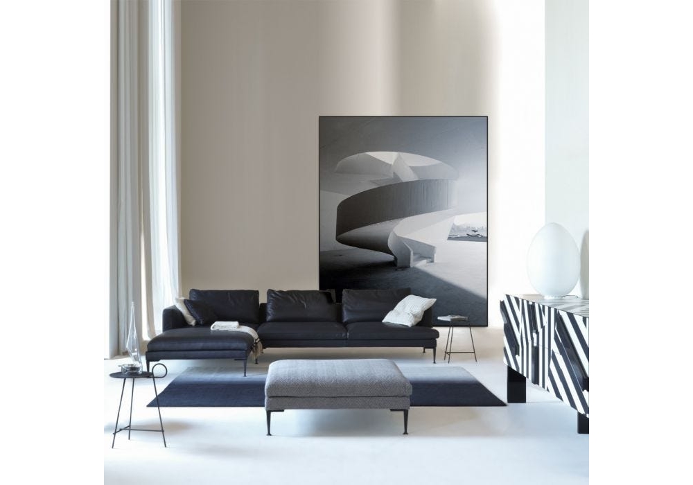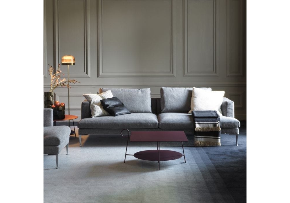 Lirico designed by Ludovica + Roberto Palomba for Driade is a modular sofa with wooden structure equipped with elastic belts and padding in polyurethane foams of different densities. Seat cushion in polyurethane foams of different densities. Back cushion included. Removable cover in fabric or fixed in leather. Feet in cast aluminum, painted in black or silver. Internal use only.