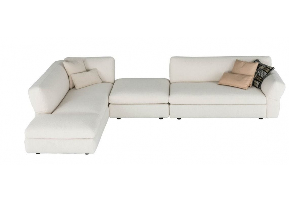 Neil designed by Ludovica + Roberto Palomba for Driade is a modular sofa with structure in solid fir wood and plywood panel, plastic foot. All the padding is in polyurethane rubbers of variable density and resin with different weight. Upholstery in removable fabric or fixed leather in different finishes. Internal use only.