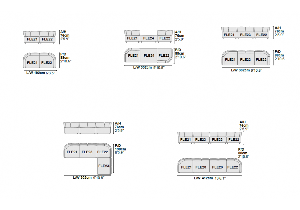 Fleur designed by Momenti Lab for Momenti is a modular sofa with structure in solid fir, plywood and wood fiber, covered with coupled polyester, padding in polyurethane covered with coupled polyester. Removable fabric cover. Feet in plastic H 2 cm.