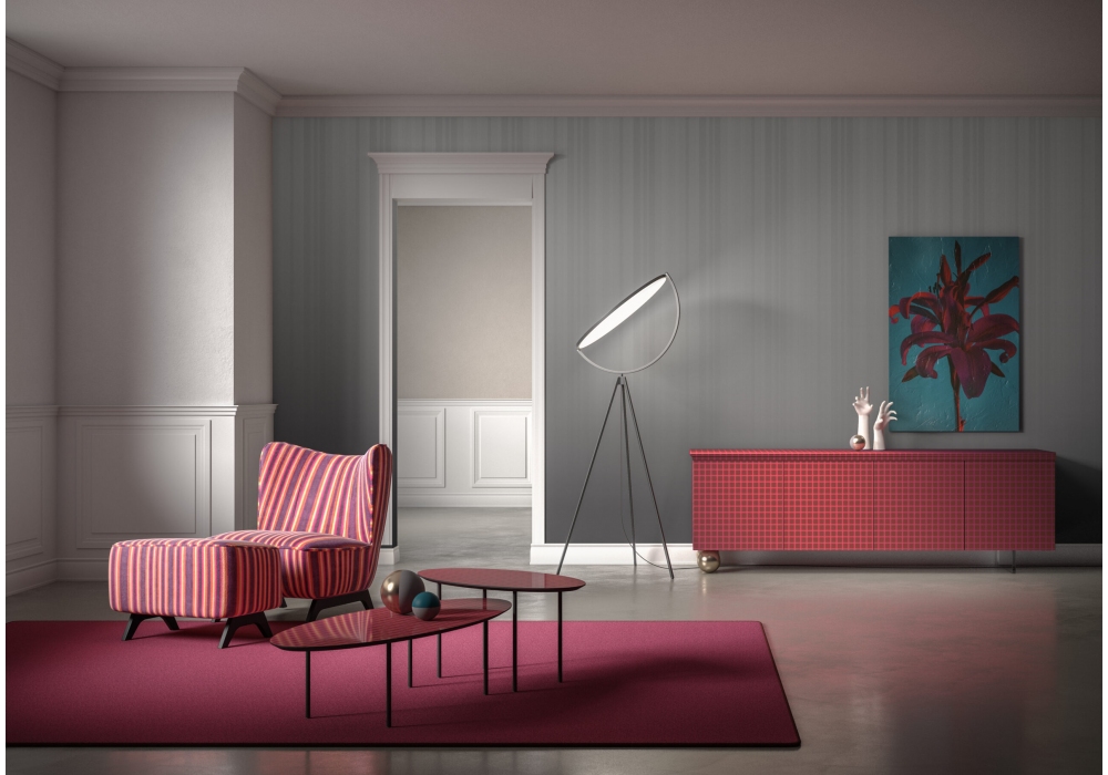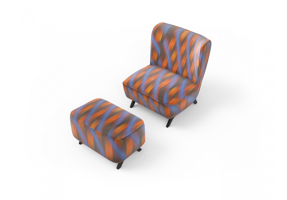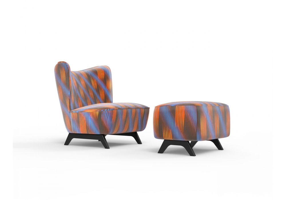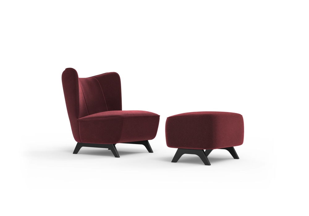 Bloom designed by Studio Debonademeo for Momenti is an armchair with structure in fir wood, padding in polyurethane foam. Feet in solid wood lacquered in white, black. Cover in different finishes, not removable.