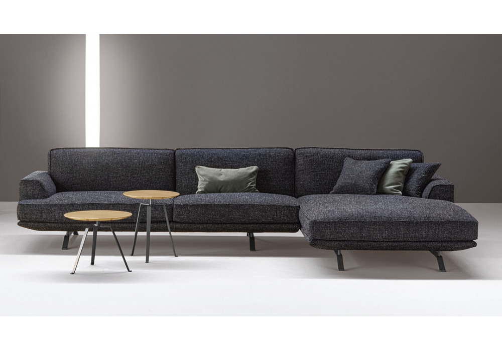 Slab Plus designed by Mauro Lipparini for Bonaldo is a modular sofa with painted metal base in different finishes. The cover is removable and made with fabrics in various colors. Available in different compositions.