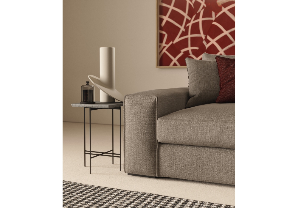 Gordon designed by Marac Lab for Marac is a sofa with structure in fir and plywood, with elastic straps. Feet in solid beech wood, natural, mocha or walnut color. Completely removable cover in different finishes, fabric or leather. Available in various sizes.