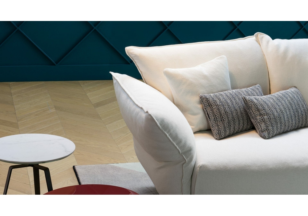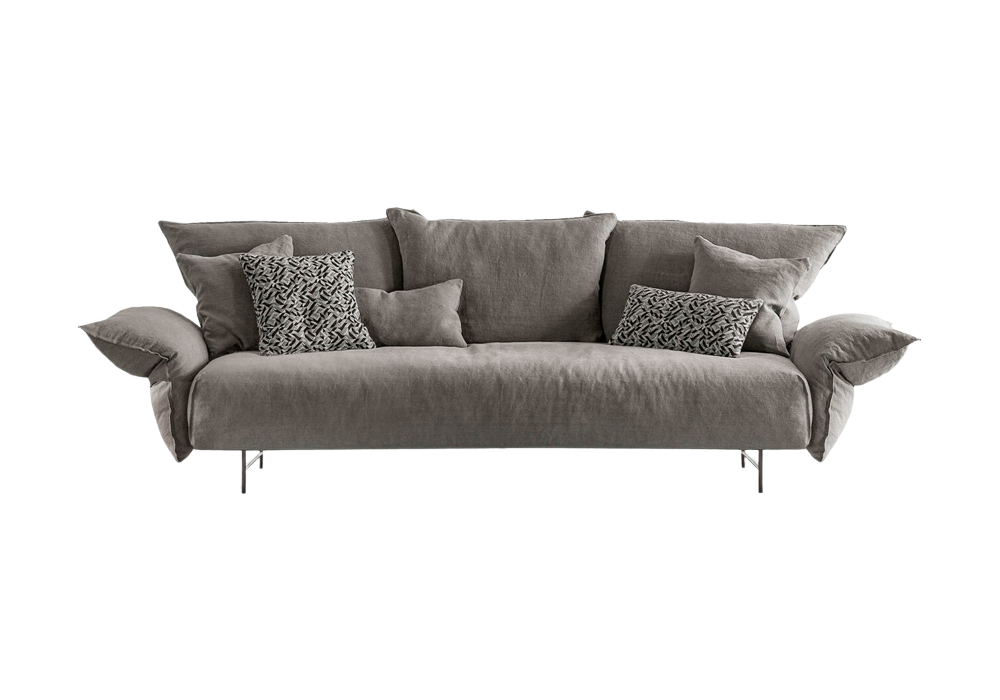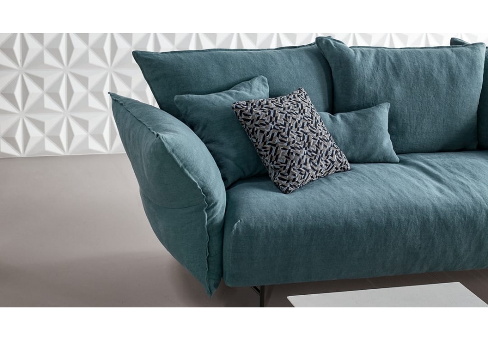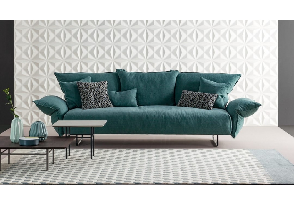 Madame C designed by Giuseppe ViganĂ² for Bonaldo is a sofa with removable fabric cover, in different finishes. The base is in matt painted metal in various colors, which can be made with feet or sled base. Available in various compositions.