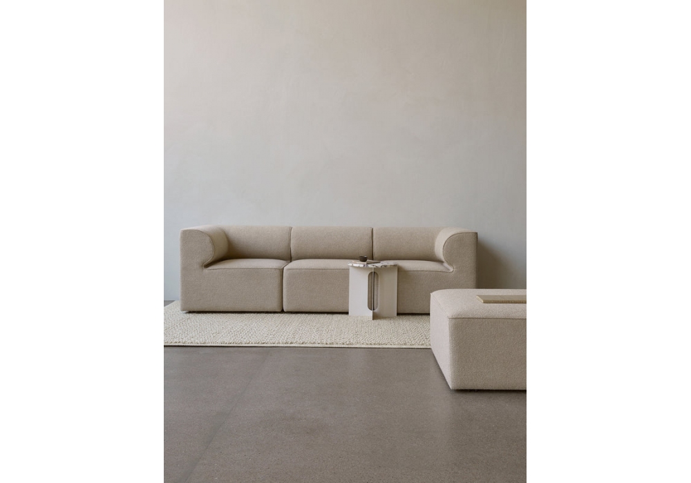 Eave designed by Norm Architects for Audo Copenhagen is a modular sofa made in pine, plywood and MDF. Seat, backrest and armrests made of a double layer of foam. Upholstery in fabric in different finishes. Available in different configurations.