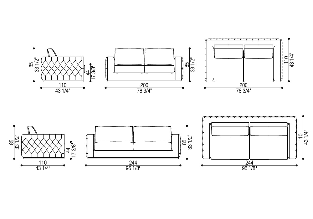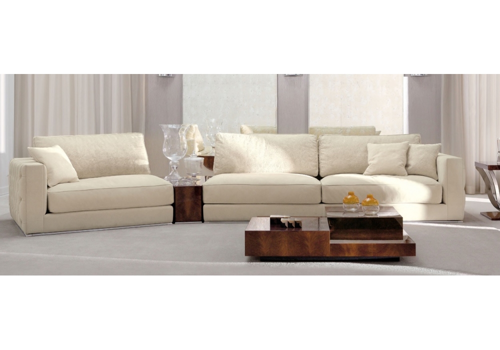 Raimond designed by Opera Contemporary is a sofa with padding in feather with polyurethane foam insert, metal base and non-removable upholstery in leather or fabric. Available in 2 dimensions. Modular in different compositions, upon request.