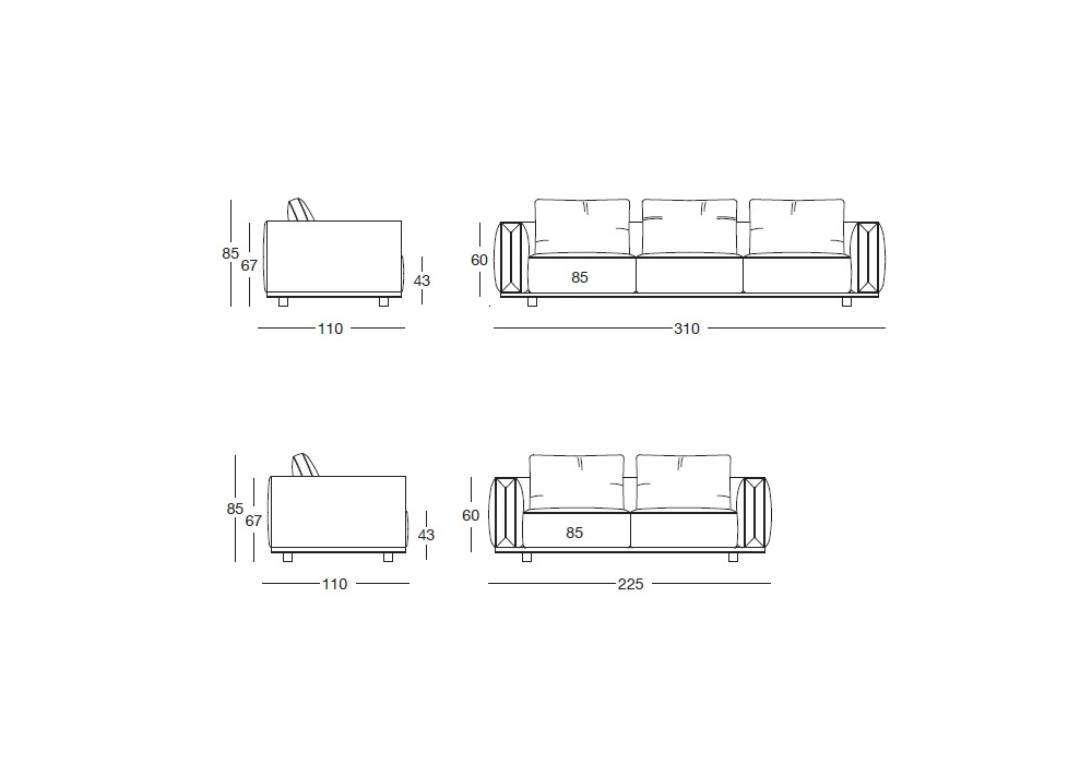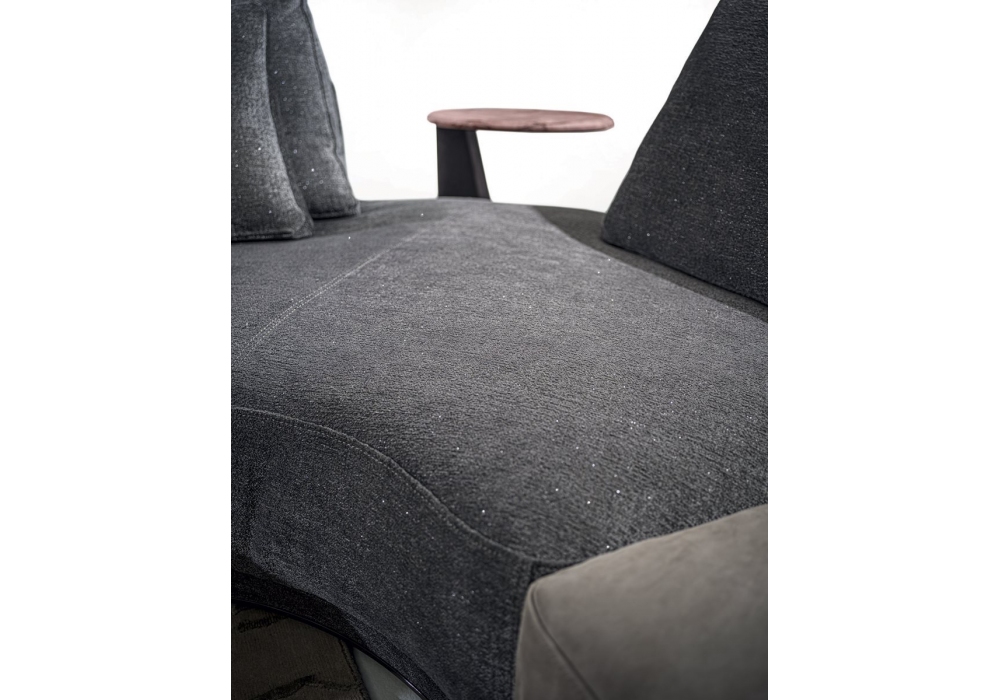 Atar designed by Giuseppe Viganò for Longhi is a modular sofa with non-removable cover in leather or fabric, with the exception of the cushions. Armrest with metal inserts in glossy or matt finish. Available in different compositions.