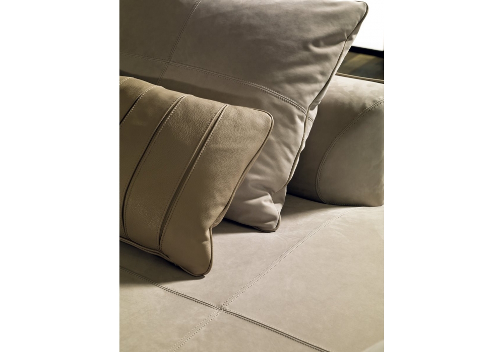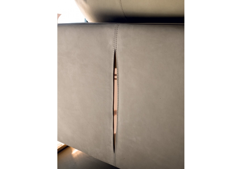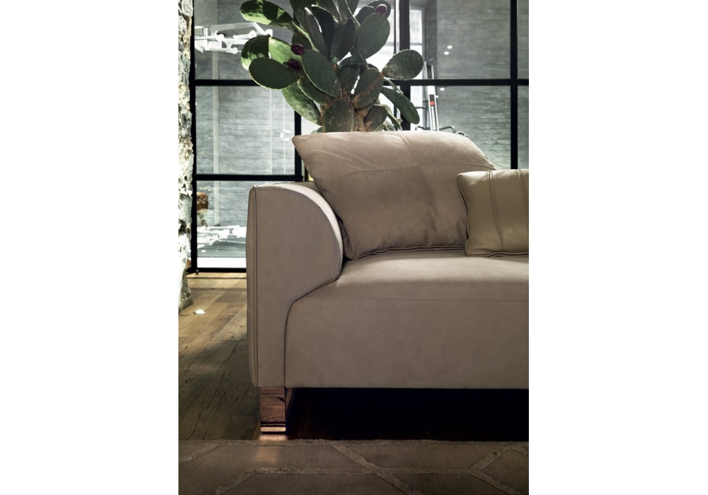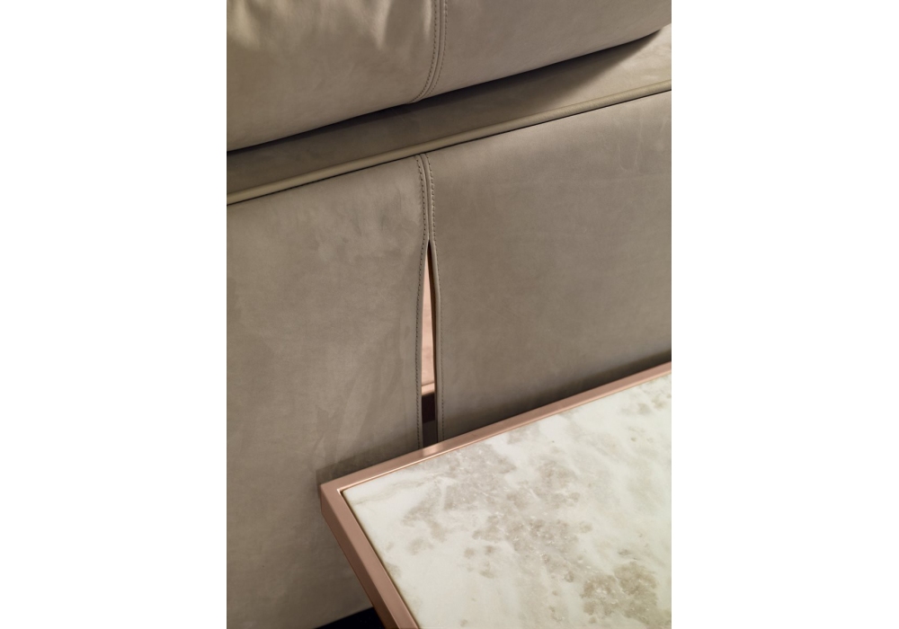Fold designed by Alessandro La Spada for Longhi is a modular sofa with metal inserts matching the finish of the base and leather upholstery. Upon request, it is possible to insert a leather-covered insert in the base. Available in different compositions.