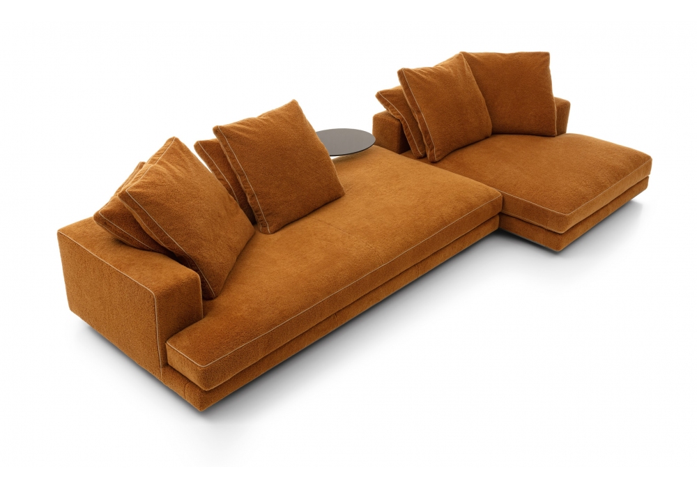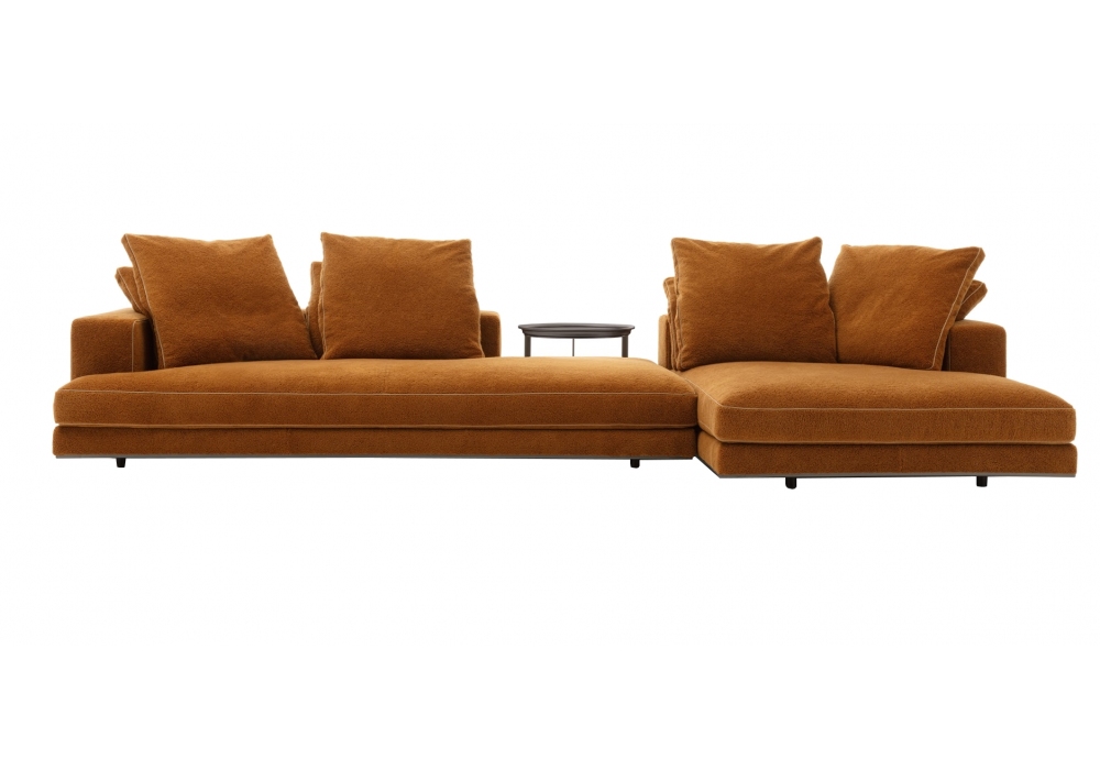 Arbiter designed by Antonio Citterio for Maxalto is a linear or modular sofa made with lower edge in painted aluminum and upholstery in fabric or leather. The product in the fabric version (velvet excluded) has tone-on-tone profiles; in the velvet version it has edges in Bellano fabric (the whole range of colours); in the leather version it has tone-on-tone envelope stitching.