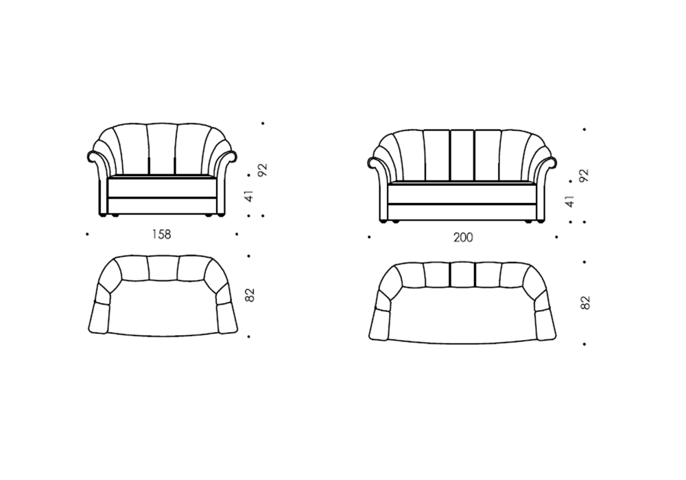 | Dimensions | - 158 x 82 x H 92 cm; - 200 x 82 x H 92 cm. |