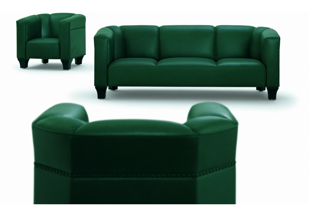 Palais Stoclet designed by Josef Hoffmann for Wittmann is a sofa with wooden structure and upholstery in fabric, velvet or leather. Available in different finishes.