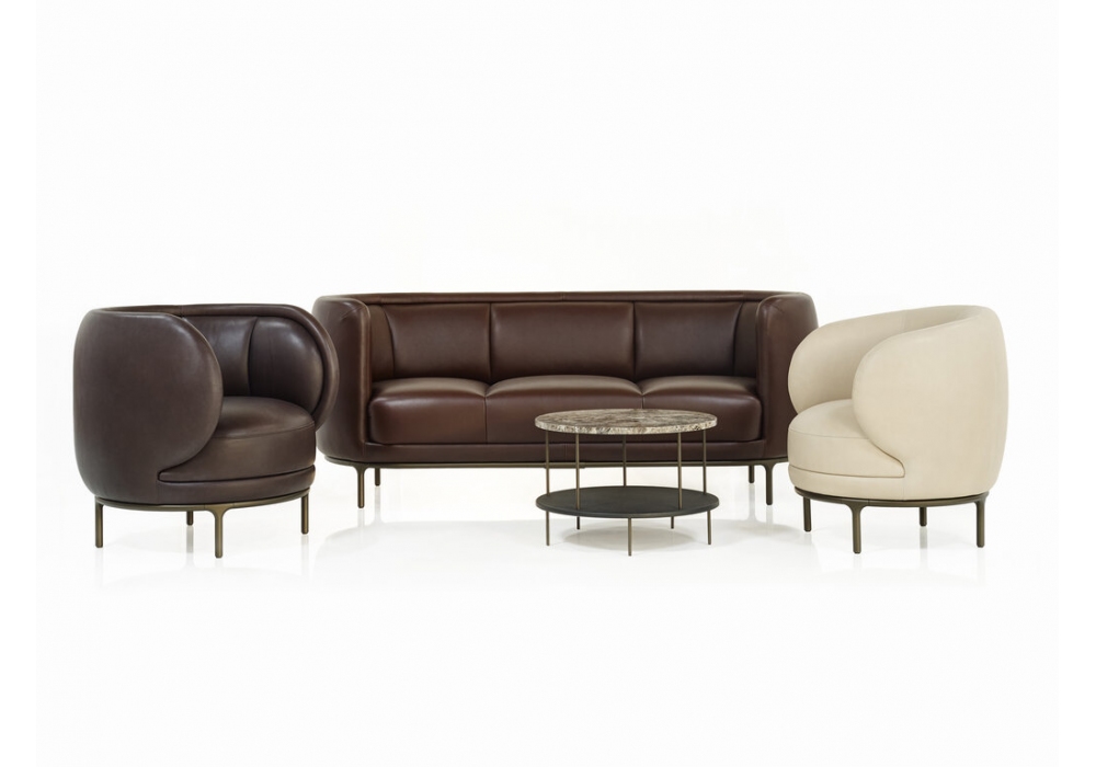Vuelta designed by Jaime Hayon for Wittmann is a sofa with wooden structure and upholstery in fabric, velvet or leather. Available in four sizes and in different finishes.